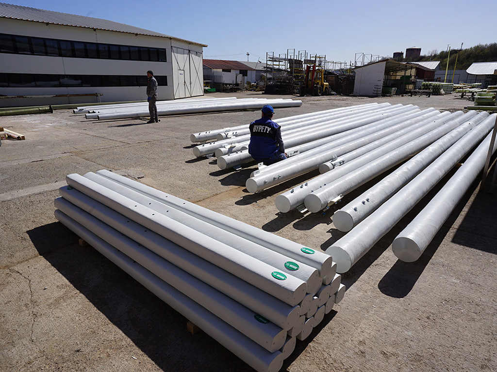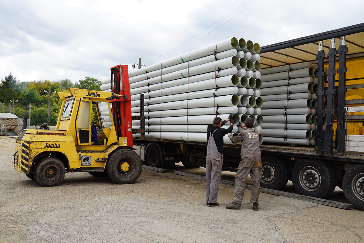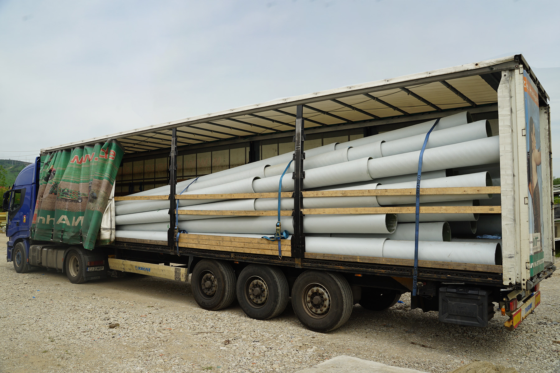 Asemenea încărcătură în care se introduc media a 150 de stâlpi din fibră de sticlă reduc costurile cu circa 10 transpoarte cu stâlpi din beton. Având interiorul gol, pot fi introduși unul în altul 2, 3, 4 buc.